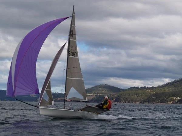Phantom sailed by Steve Miller and Claire Cerutty fly through to take the win in heat 7 on day 2 of the Tasmanian State titles. Photo: Earl Westbury