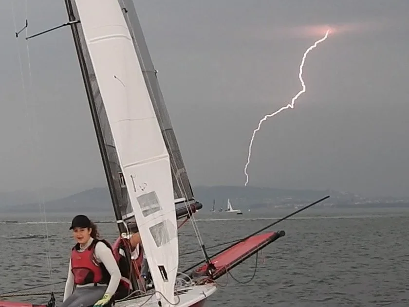 A massive thunder storm, much needed given the devastating bushfires this summer, sent the fleet scurrying for shore on Day 4. Everyone got home safely, despite some really weird wind on the way back, including huge gusts then nothing. Great pics from Jasmine Young capture the moment!