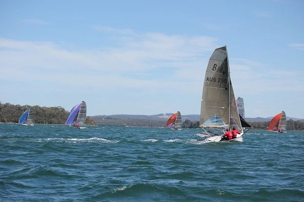 Downwind all the all the boats were flying with all the crews hotting up their boats to get flat out rides.