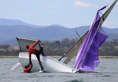 Bad luck followed Phantom who decided it time to rest after the mark and wash the sails so Bondi Tram and Orca had to take evasive action. A quick recovery with the kite up saw Steve and Earl start to slowly pull back up through the fleet.