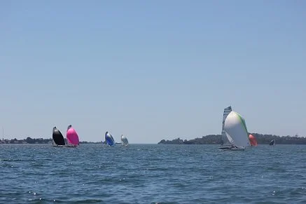 By the bottom of the second lap, 1MFTBone had expanded their lead. The Nude rounded well back after a successful 7th race. Bondi Tram and The Hitcher had a tight rounding at the mark followed by Orca Blush, Yellow Bone and B alert at the back of the fleet. Orca Blush had an unfortunate spinnaker drop as they rounded the bottom mark and had to pull off to the far right of the course to correct things.