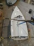 boats should be ready for the Inlands at Queen Mary Sailing Club on the 1st and 2nd October. The hulls are being built in light grey rather than white to avoid the glare of the sun. The deck has been tweaked to remove the gaps in the outer kick bars, stainless steel mounts have been added for the wing horns and new hulls, on the basic fitout hull only, will come with foils aligned (supplied either by
