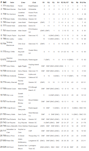 Full results for the Nationals. Handicap and "One Tonne Cup" results, along with other prizes: