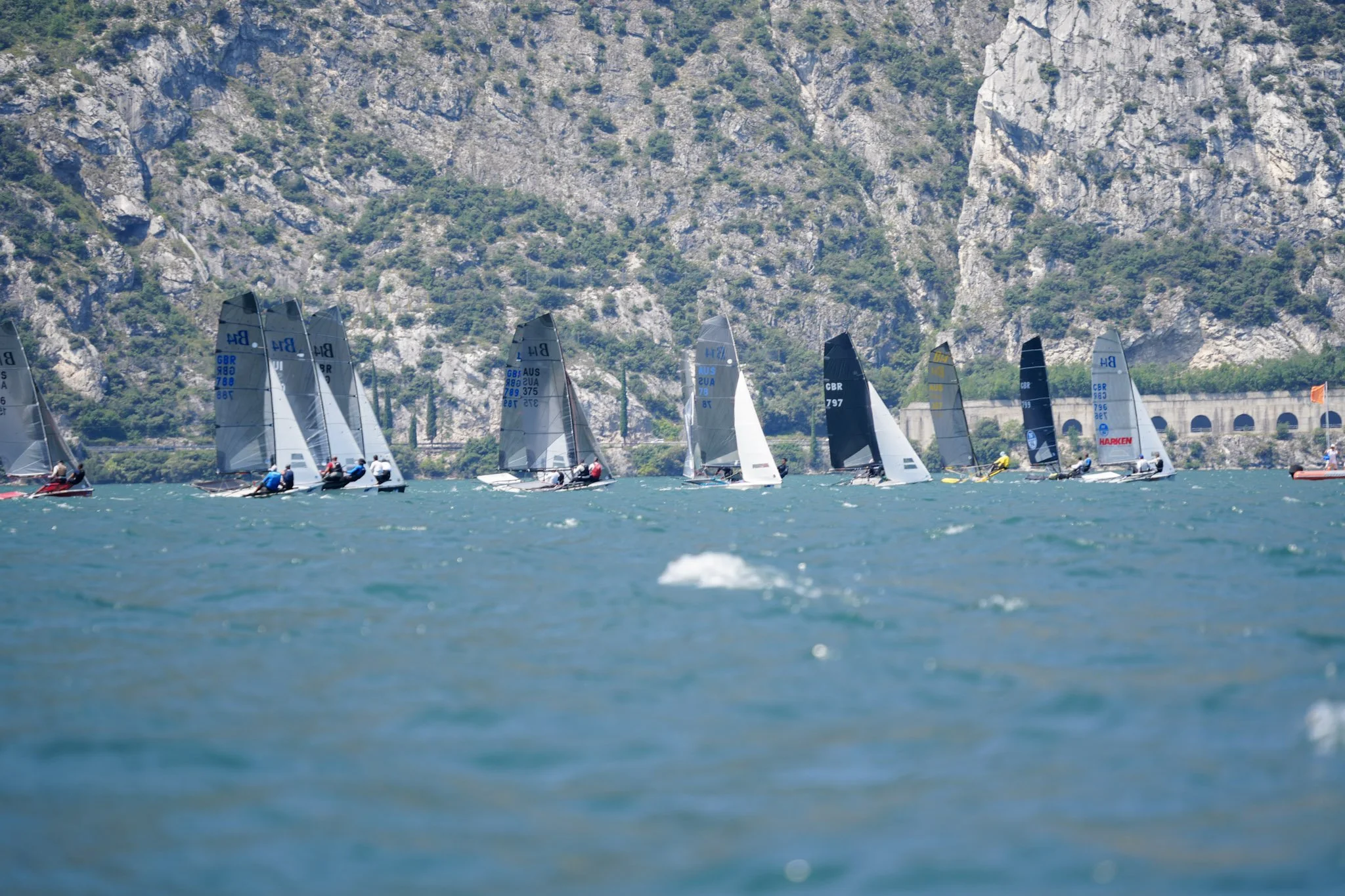 Race 5 started off in what felt like at the time a building Ora which enticed some, including series leader Nick Craig / Tobytastic (GBR 796), to go the right cliffs which were visibly closer to the start line and seemed to some as an obvious choice. Mark Watts / Matt Johnson (GBR 797) lead the left pack with Russ Gibbs / Lucy Loughton (GBR 762) and Mark Barns / Simon Reynolds (GBR 799) in hot pursuit. The down wind legs proved very tricky with gusts coming down and angles changing constantly. Wattsy / MJ defended hard but in was Russ / Lucy that took the win in the end.