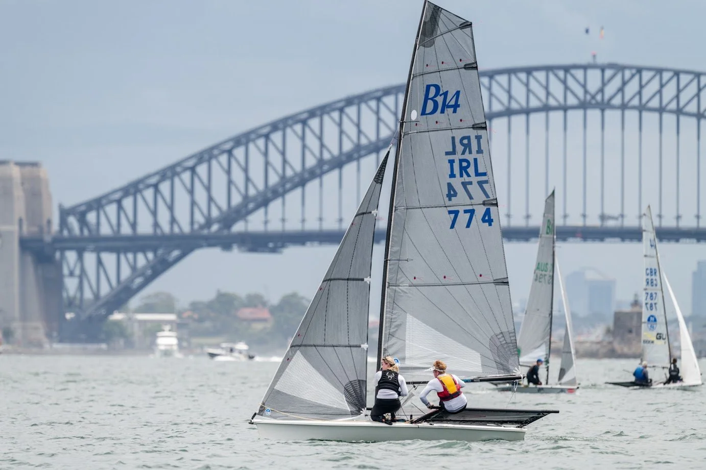 The weather wasn’t exactly welcoming on Sydney Harbour for the B14 World Championships today. With the sky heavy and overcast, the drizzle falling steadily, and winds gusting, there was little enthusiasm in the boat park. The conditions weren’t exactly ideal for racing, and you could feel the collective sense of hesitation among the sailors.
