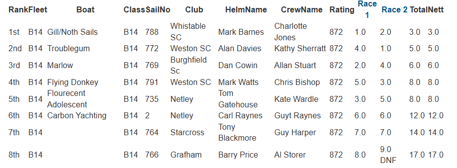 Results: http://www.dwsc.co.uk/results/B14&505.htm