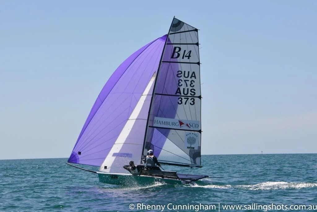 Bancroft commented 'It was Lachie’s call on us being over at the start and he was right'. They were now over a minute behind but as Aussies love an underdog Bancroft and Imeneo clawed their way back to the be in the top five boats on the final downwind leg to the gate. Positioning themselves on the inside track they snuck round the mark and finished the race in first. Brent Frankcombe and Leigh Dunstan AUS 375 has led the race until that last leg but with the meeting of the boats at the mark they lost ground and slipped back to finish fifth.