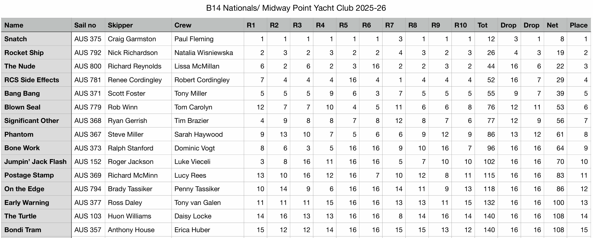 Check out the full results here: B14 National Titles 2025-26 - Midway Point Yacht Club